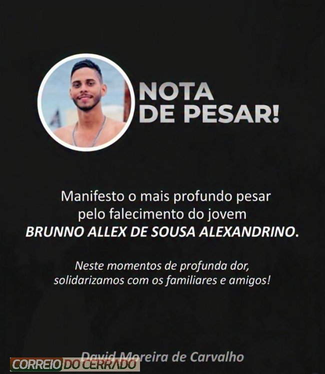 O Correio do Cerrado lamenta profundamente o Falecimento de Brunno Allex de Souza Alexandrino.