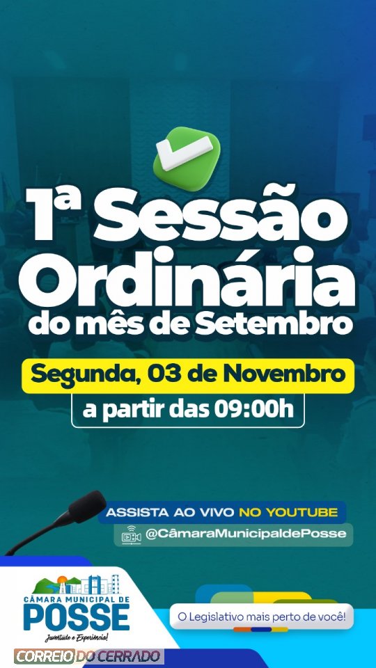 Nesta segunda-feira, 03 de novembro, a Câmara Municipal de Posse/GO realiza a primeira Sessão Ordinária do mês de novembro, um importante momento de diálogo, transparência e trabalho em prol da população Possense.