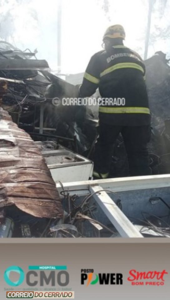 Campos Belos: Bombeiros controlam incêndio que atingiu depósito de material reciclável