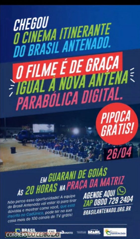 Guarani de Goiás recebe Cinema Itinerante com filme e pipoca grátis