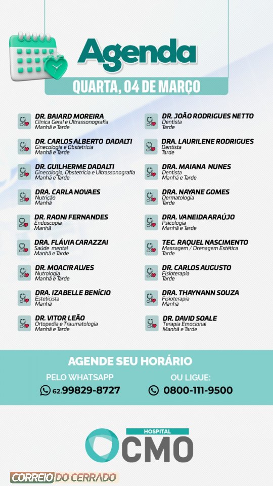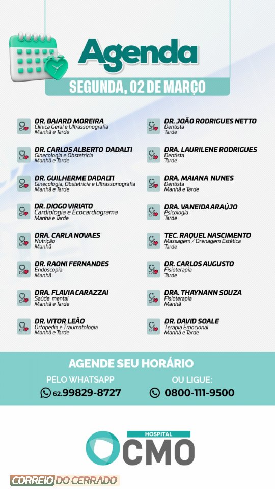 O Hospital CMO de Posse/GO está com a agenda aberta para consultas e procedimentos especializados. Nossa equipe de profissionais está pronta para oferecer um atendimento completo e de qualidade em diversas áreas.
