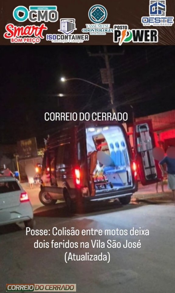 Sexta-feira, 13 de fevereiro — Um grave acidente envolvendo duas motocicletas foi registrado por volta das 19h20 na Vila São José, em Posse/GO.