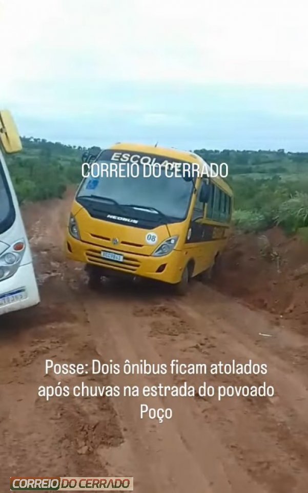 Na manhã desta Quarta-feira, 21 de janeiro, o Correio do Cerrado recebeu diversos vídeos e relatos sobre dois ônibus escolares que ficaram atolados na estrada do povoado Poço, no trecho que dá acesso à GO-446, em Posse/GO.