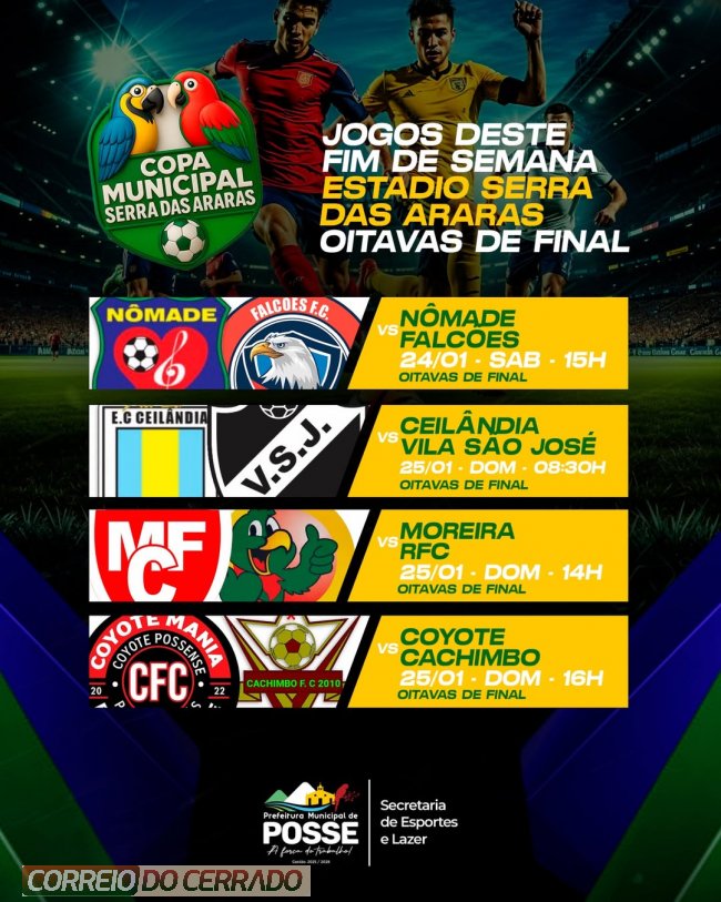 A Secretaria de Esportes e Lazer da Prefeitura Municipal de Posse convida toda a comunidade para prestigiar, torcer e apoiar nossos atletas nesta fase eliminatória!
