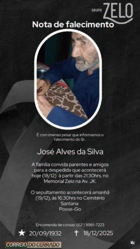 O Grupo Zelo e a família da Silva, comunicam com pesar o falecimento de José Alves da Silva, ocorrido nesta quinta-feira (18), aos 93 anos de idade.