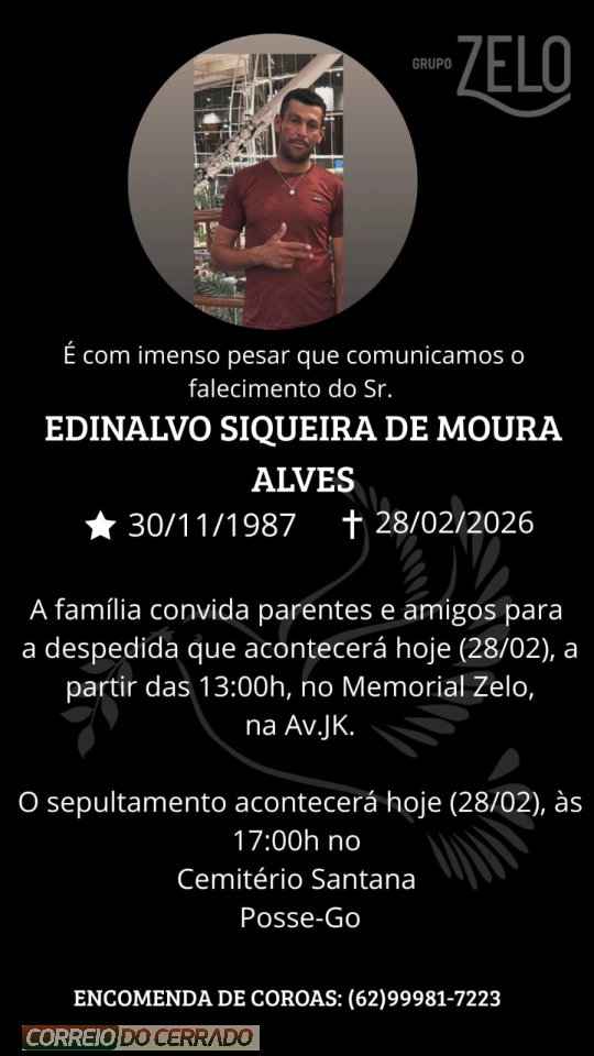 O Grupo Zelo e a família Alves, comunicam com pesar o falecimento de Edinalvo Siqueira de Moura Alves, ocorrido nesta sexta-feira (27), aos 38 anos de idade.