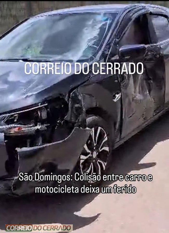 Sábado, 07 de março — Um acidente envolvendo um carro e uma motocicleta foi registrado por volta das 12h40 na Rua Abraão, em São Domingos/GO.