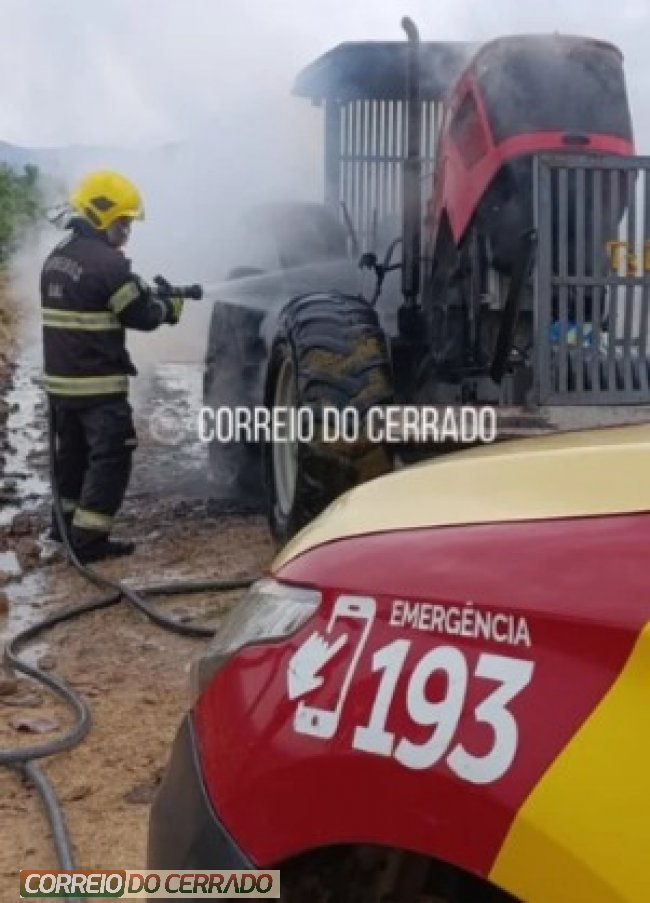 Ao chegar ao local, a equipe se deparou com um trator em chamas. A ação rápida dos bombeiros evitou que o fogo se alastrasse para a vegetação próxima, o que poderia causar um incêndio de maiores proporções.