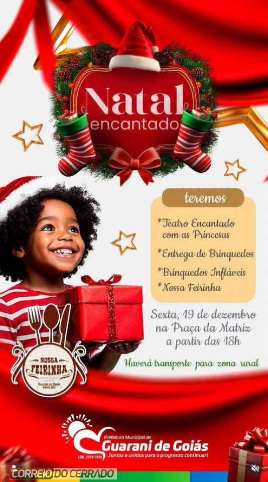A Prefeitura de Guarani de Goiás convida todas as famílias para viverem um momento especial de alegria, união e encantamento no Natal Encantado.