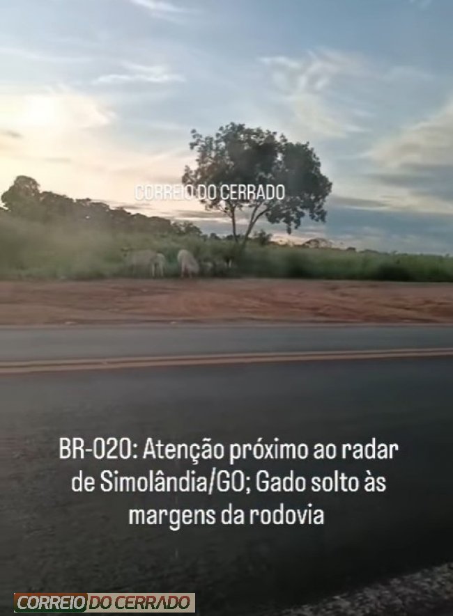 Na manhã desta terça-feira, 17 de março, um telespectador do Correio do Cerrado flagrou animais soltos às margens da BR-020, em Simolândia/GO, nas proximidades do radar no sentido Posse/GO.