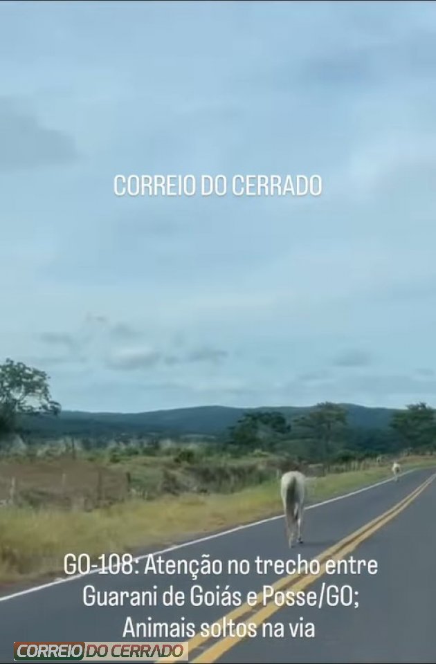 Na manhã deste sábado, 03 de janeiro, recebemos diversos relatos e vídeos sobre animais soltos na rodovia GO-108 entre Guarani de Goiás e Posse/GO, este vídeo foi feito próximo ao Monte Alto.