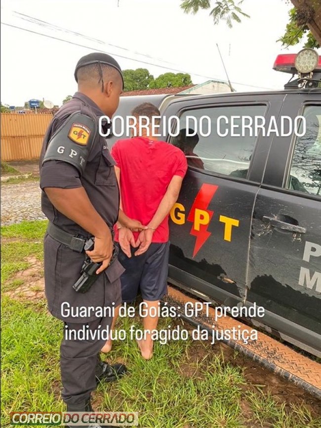 Na tarde desta quinta-feira, 05 de março, por volta das 16h40, a equipe do GPT do 24º BPM, após levantamento de informações acerca de um indivíduo que se encontrava foragido da Justiça e que estaria na cidade de Guarani de Goiás, deslocou-se até o local indicado, logrando êxito em sua localização.