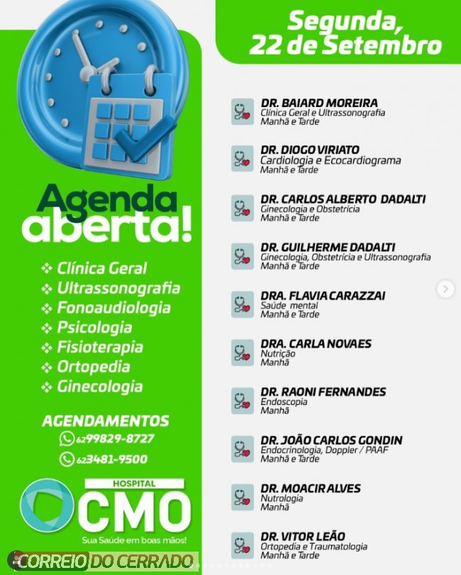 O Hospital CMO de Posse/GO está com a agenda aberta para consultas e procedimentos especializados. Nossa equipe de profissionais está pronta para oferecer um atendimento completo e de qualidade em diversas áreas.
