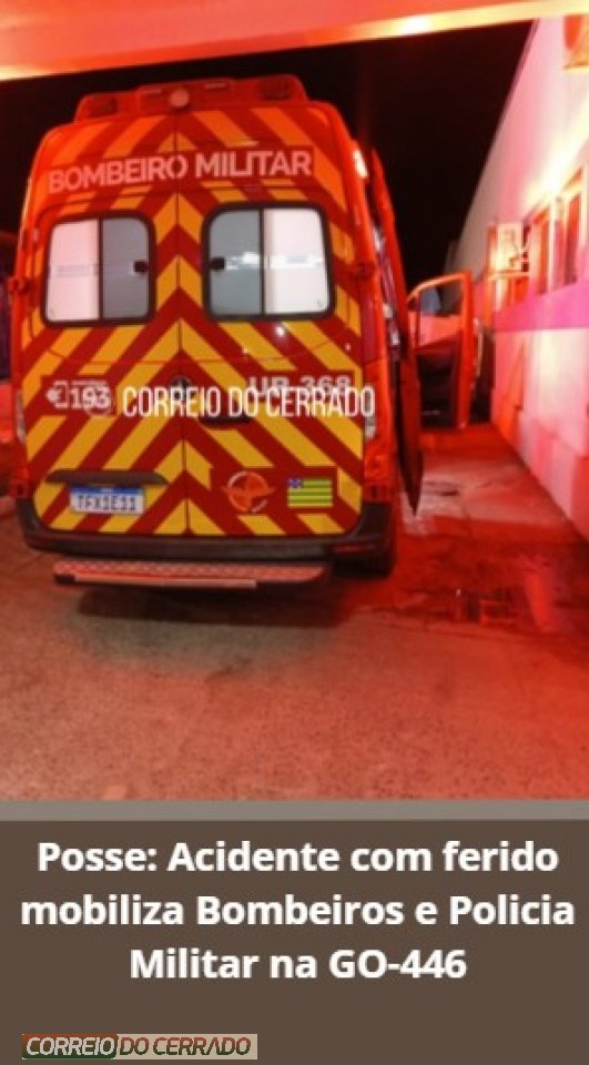 Posse: Acidente com ferido mobiliza Bombeiros e Policia Militar na GO-446