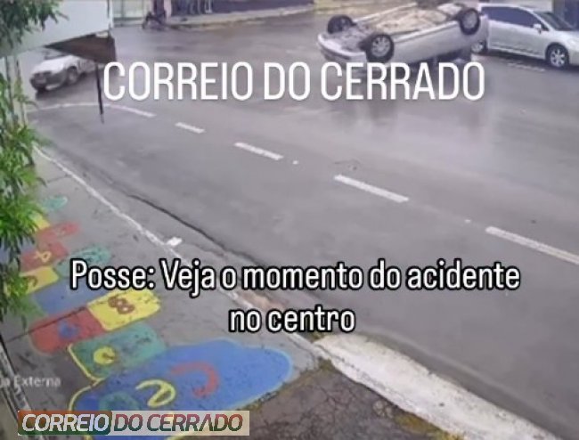 Posse: colisão entre dois veículos termina com carro capotado no centro da cidade