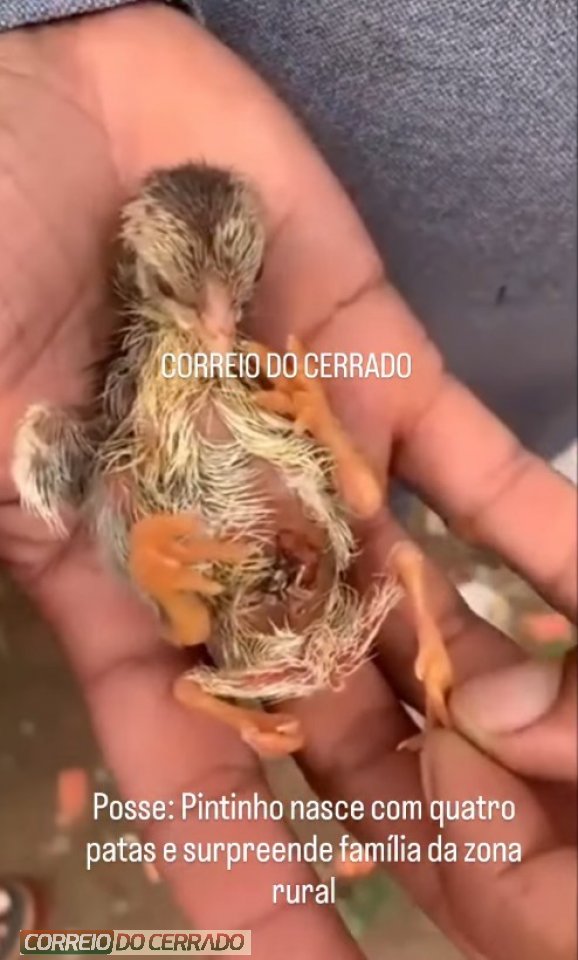 Um nascimento diferente chamou a atenção de uma família da zona rural de Posse/GO, e acabou surpreendendo também a redação do Correio do Cerrado. Uma telespectadora enviou à nossa equipe um vídeo mostrando um pintinho recém-nascido com quatro patas, fato raro e que deixou todos no sítio bastante impressionados.