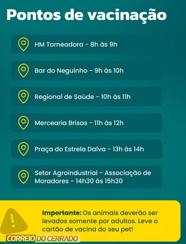 A ação acontece neste sábado, 13 de setembro, das 08h às 16h30, em diversos pontos da cidade, e tem como objetivo garantir a saúde e a segurança de cães, gatos e também de toda a população.