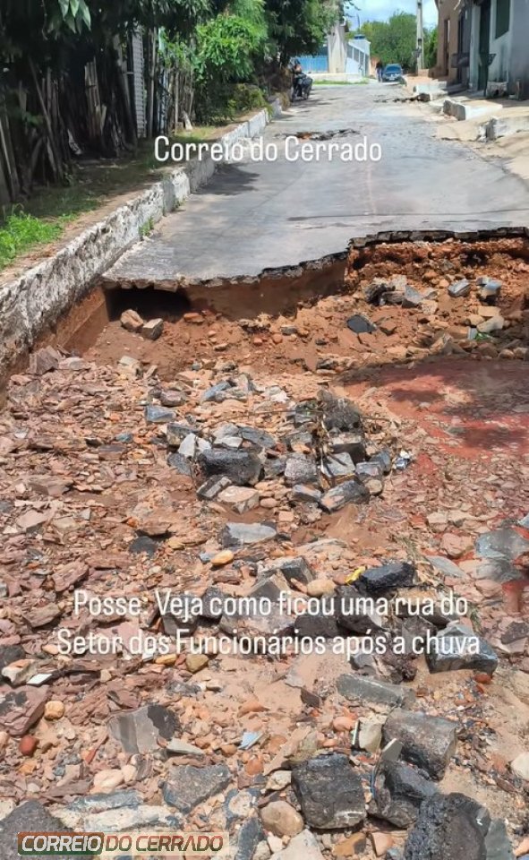 Posse: Veja como ficou uma rua do Setor dos Funcionários após a chuva