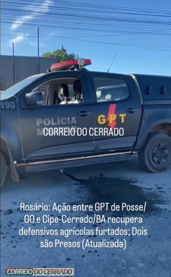 Sexta-feira, 27 de março — Forças de segurança dos estados de Goiás e Bahia recuperaram uma carga de defensivos agrícolas avaliada em aproximadamente R$ 270 mil e desarticularam um grupo criminoso envolvido em furtos desse tipo de produto, em ação realizada na divisa entre os dois estados.