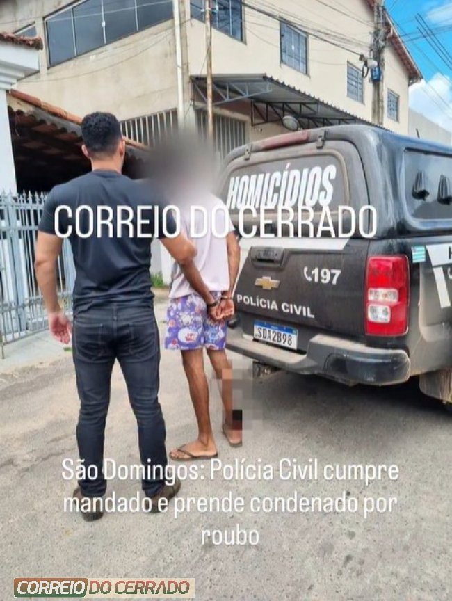 Na manhã desta sexta-feira, 20 de fevereiro, a Polícia Civil do Estado de Goiás, por meio da Delegacia de Polícia de São Domingos/GO, deu cumprimento a mandado de prisão expedido pelo Poder Judiciário contra um homem condenado pelo crime de roubo, tipificado no artigo 157 do Código Penal.