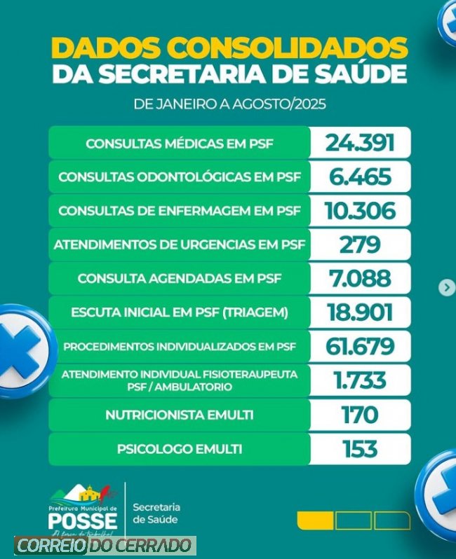 A Secretaria Municipal de Saúde de Posse apresenta os resultados de janeiro a agosto de 2025, reforçando o trabalho realizado em benefício da população.