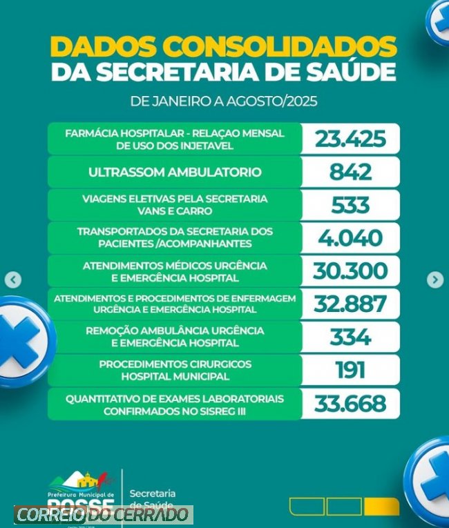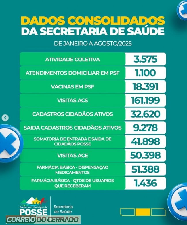 A Secretaria de Saúde de Posse divulga os resultados de janeiro a agosto de 2025