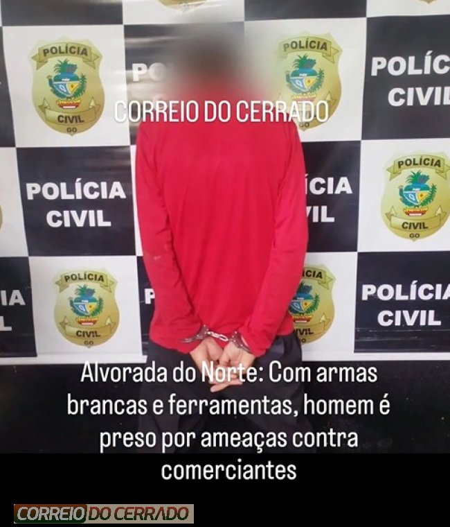 Alvorada do Norte: Com armas brancas e ferramentas, homem é preso por ameaças contra comerciantes