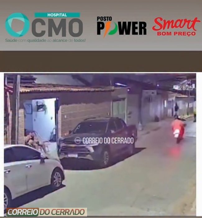 Câmeras de segurança registraram a ação criminosa: dois homens chegaram em uma motocicleta, desceram do veículo e efetuaram diversos disparos contra o alvo.
