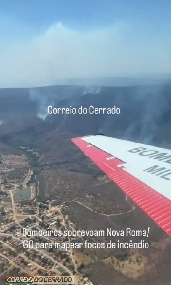 Na manhã desta segunda-feira, 08 de setembro, o Corpo de Bombeiros realizou um sobrevoo de monitoramento sobre a cidade de Nova Roma/GO. A ação foi conduzida pelo comandante da 10ª Companhia, Capitão Barbosa, a bordo de uma aeronave, com o objetivo de mapear e identificar os focos de incêndio que atingem a região.