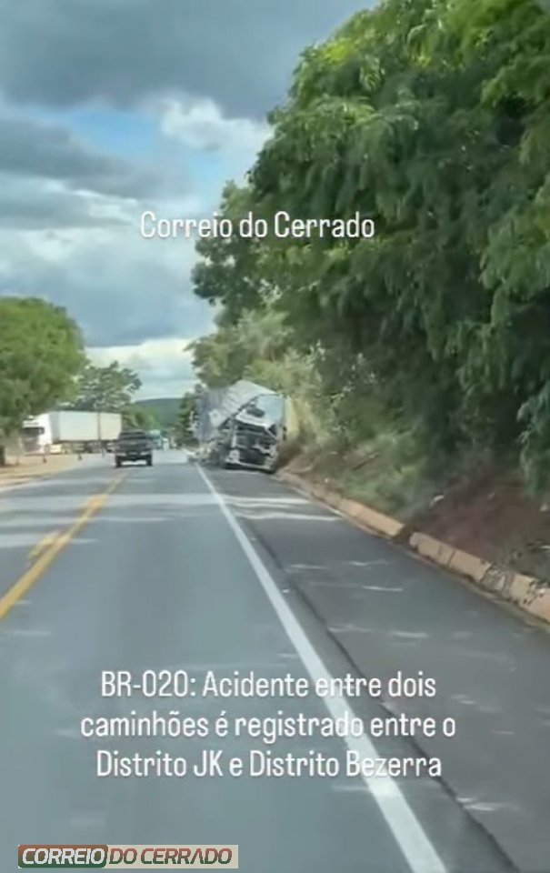 Na tarde desta quinta-feira, 27 de novembro, um acidente envolvendo dois caminhões foi registrado na BR-020, entre o Distrito de JK e Formosa/GO, em frente a uma pamonharia da região.