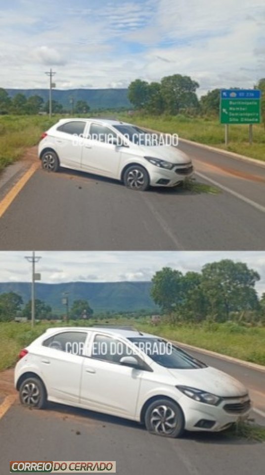 Na manhã deste domingo, 04 de janeiro, um motorista perdeu o controle do carro e saiu da pista na BR-020 em Simolândia/GO, no trevo de acesso a Buritinópolis/GO.
