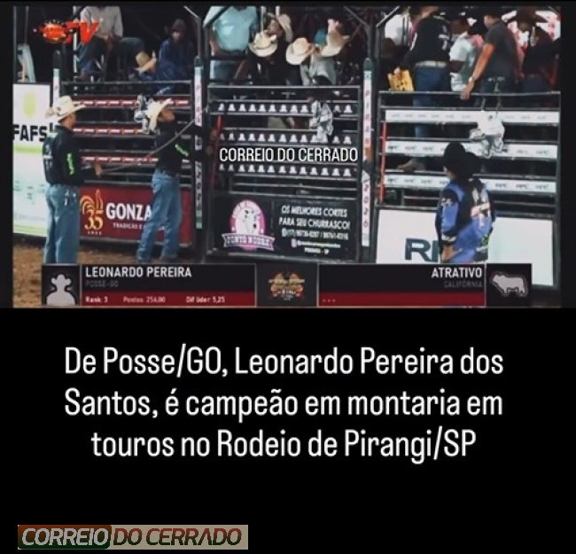 O jovem peão de Posse, no nordeste goiano, Leonardo Pereira dos Santos escreveu seu nome na história do rodeio ao conquistar o título de campeão na modalidade montaria em touro durante a 32ª edição do Rodeio de Pirangi, realizada em Pirangi. A grande final aconteceu na noite deste sábado, 14 de março, reunindo competidores de diversas regiões do país.