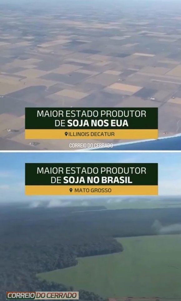 O maior produtor de soja do Brasil frente ao maior produtor de soja dos Estados Unidos.