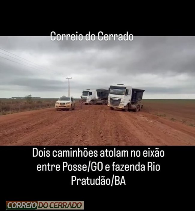 Na manhã desta terça-feira, 25 de novembro, um Telespectador do Correio do Cerrado enviou o relato sobre dois caminhões que estão atolados, no eixão que liga Posse/GO até a fazenda Rio Pratudão, em Jaborandi/BA.