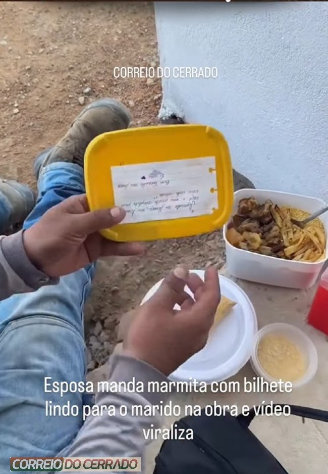 Esposa manda marmita com bilhete lindo para o marido na obra e vídeo viraliza