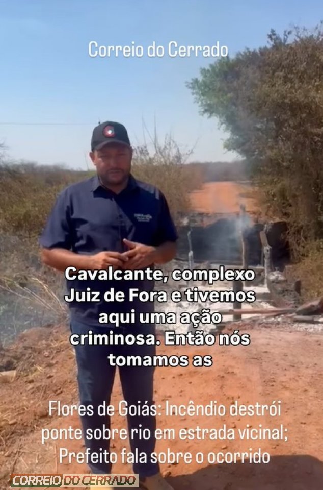 O prefeito de Flores de Goiás, Altran Avelar, esteve hoje quarta-feira, 01 de outubro, na ponte de uma estrada vicinal às margens da GO-114 para relatar o incidente que ocorreu na madrugada. Segundo ele, a ponte sobre o rio foi atingida por um incêndio durante a noite.
