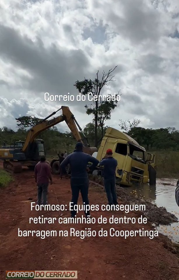 Formoso: Equipes conseguem retirar caminhão de dentro de barragem na Região da Coopertinga