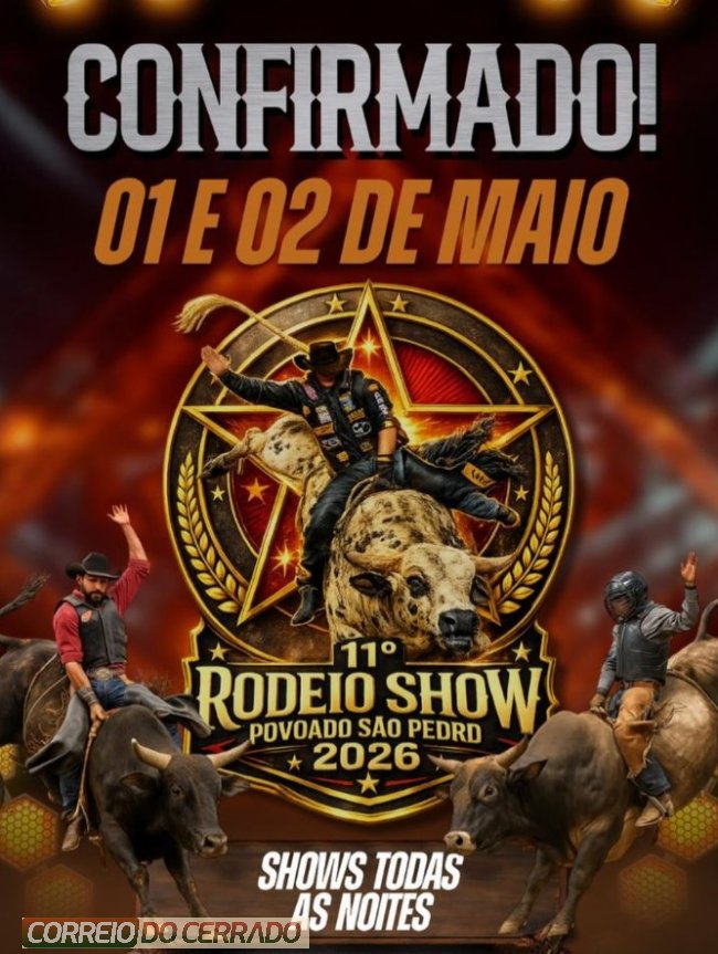 O clima de festa já começa a tomar conta do povoado São Pedro, em Guarani de Goiás. Um dos eventos mais aguardados da região, o Rodeio Show, já tem data confirmada e promete reunir emoção, tradição e grandes momentos nos dias 1º e 2 de maio de 2026.
