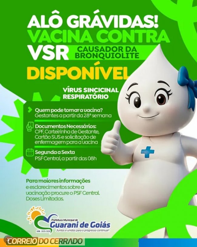 Guarani de Goiás: Vacina contra o VSR já está disponível para gestantes