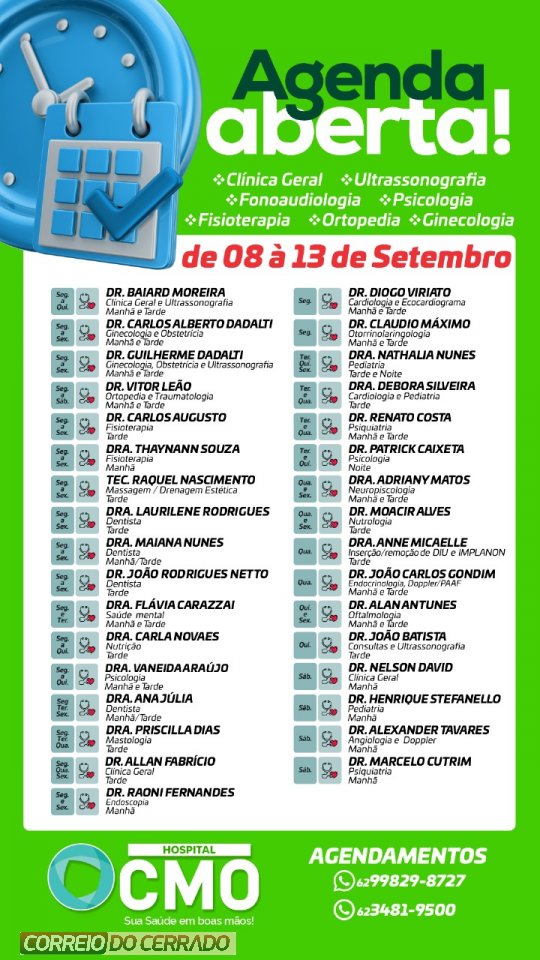 O Hospital CMO de Posse/GO está com a agenda aberta para consultas e procedimentos especializados. Nossa equipe de profissionais está pronta para oferecer um atendimento completo e de qualidade em diversas áreas.
