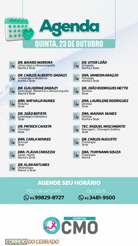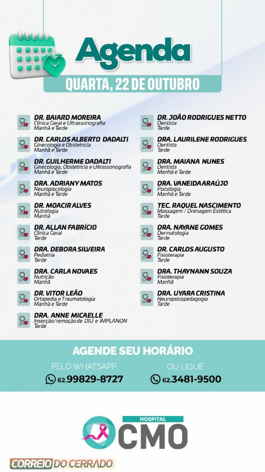 O Hospital CMO de Posse/GO está com a agenda aberta para consultas e procedimentos especializados. Nossa equipe de profissionais está pronta para oferecer um atendimento completo e de qualidade em diversas áreas.