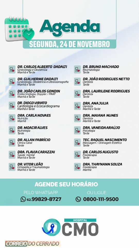 O Hospital CMO de Posse/GO está com a agenda aberta para consultas e procedimentos especializados. Nossa equipe de profissionais está pronta para oferecer um atendimento completo e de qualidade em diversas áreas.