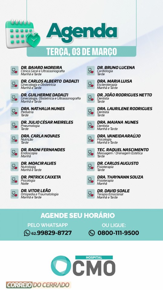 O Hospital CMO de Posse/GO está com a agenda aberta para consultas e procedimentos especializados. Nossa equipe de profissionais está pronta para oferecer um atendimento completo e de qualidade em diversas áreas.