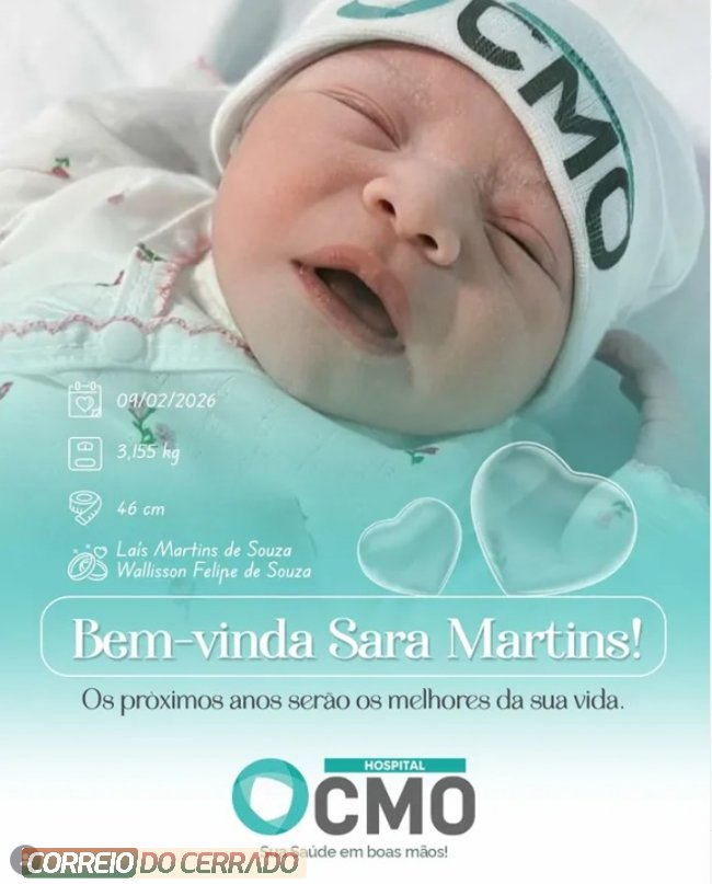 É com muita alegria que celebramos a chegada da Sara, que nasceu no dia 09 de Fevereiro de 2026, aqui no Hospital CMO!