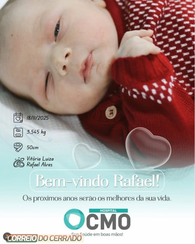 É com muita alegria que celebramos a chegada do Rafael, que nasceu no dia 18 de Novembro de 2025, aqui no Hospital CMO!