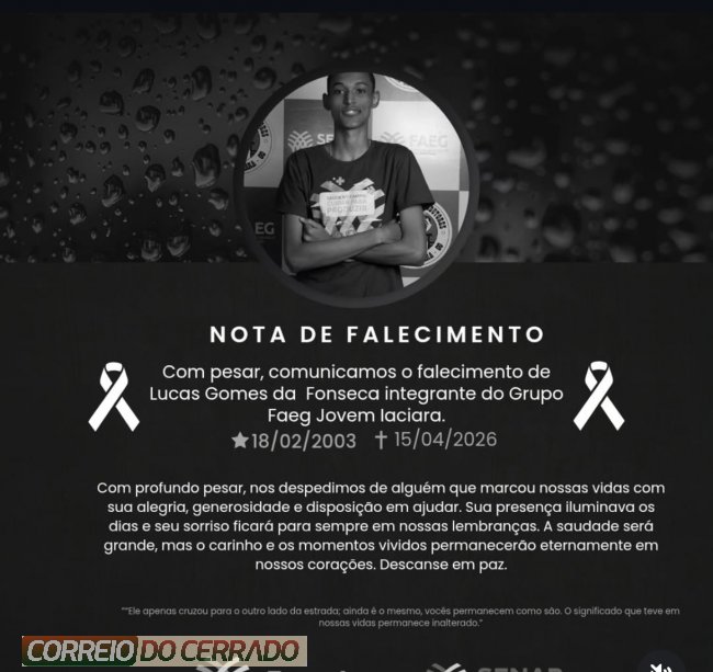 Neste momento de dor, nos solidarizamos com familiares e amigos, pedindo a Deus que conceda força e conforto para enfrentar essa perda tão difícil.
