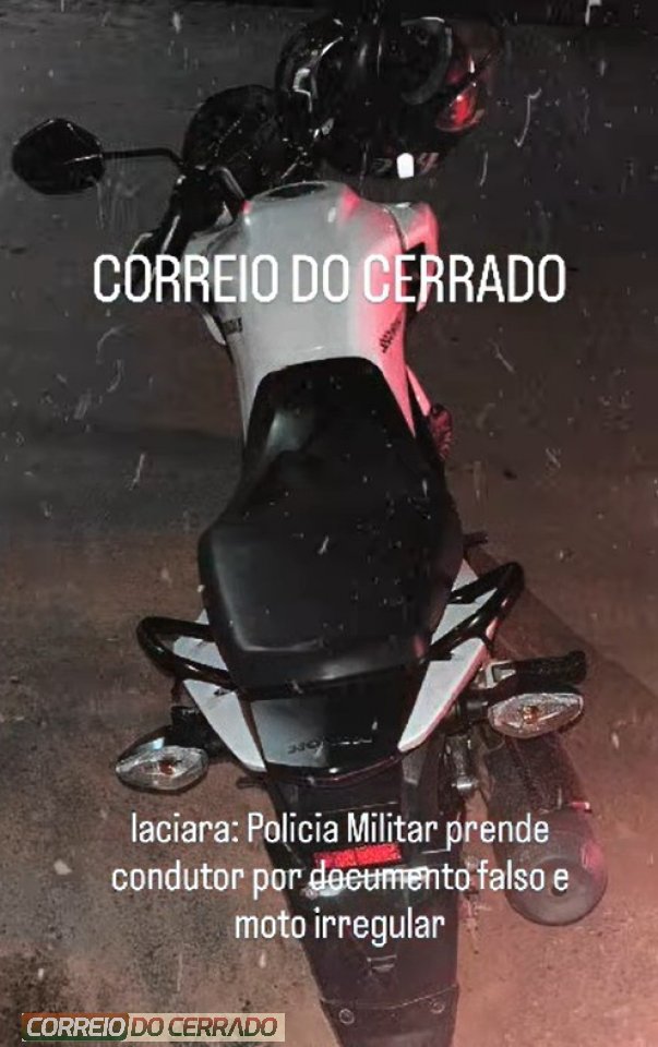 Sexta-feira, 13 de fevereiro, por volta das 18h30, a Polícia Militar, durante patrulhamento no setor São Pedro, em Iaciara, abordou um motociclista que trafegava sem placa de identificação. Ao perceber a viatura, o condutor demonstrou nervosismo e tentou acessar uma rua lateral, o que motivou a abordagem.