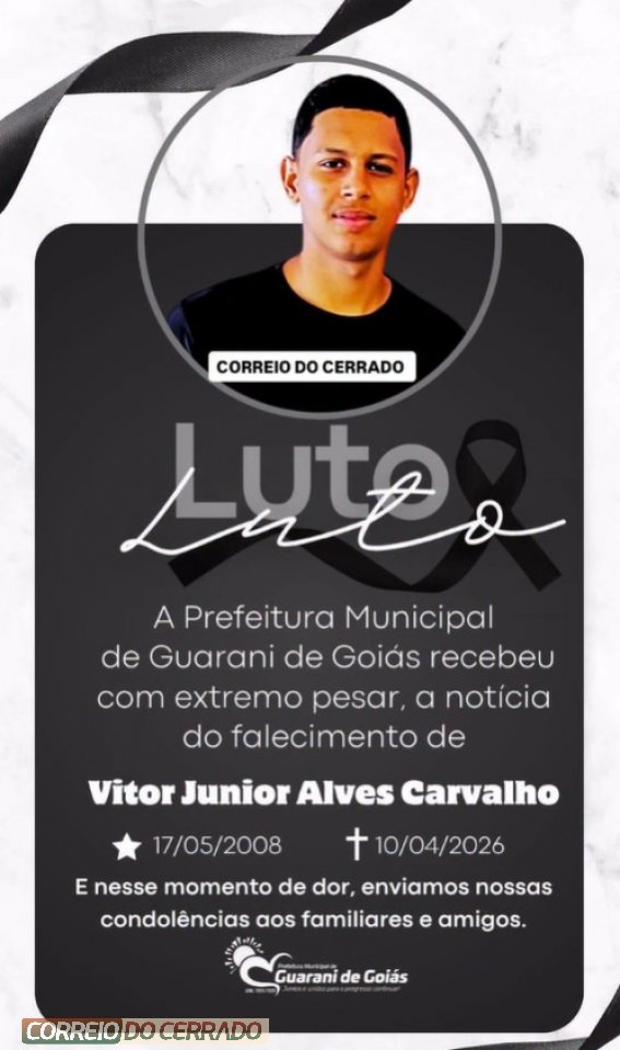 Com profundo pesar, comunicamos o falecimento de Vitor Junior Alves Carvalho, vítima de um acidente de moto ocorrido na madrugada desta sexta-feira, 10 de abril, na GO-108, em Guarani de Goiás.