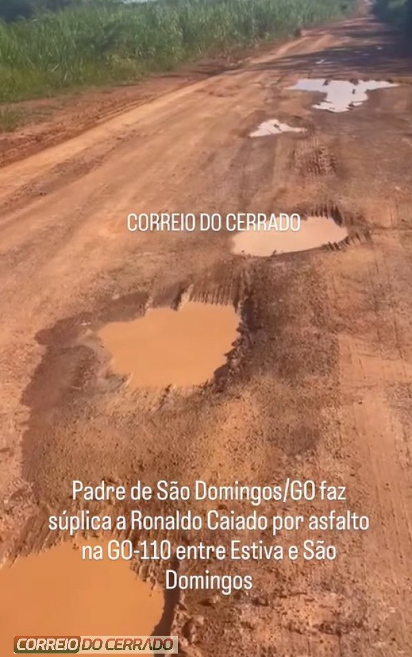 Terça-feira, 10 de março — Em um apelo carregado de esperança e preocupação com a população da região, o padre Deuslí Evangelista, do município de São Domingos, fez uma súplica pública ao governador do Estado de Goiás, Ronaldo Caiado, pedindo atenção para a situação da GO-110, no trecho que liga o povoado Estiva ao município.