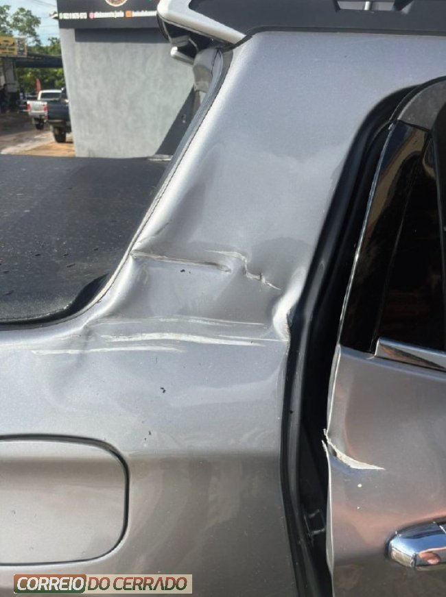 Com o impacto, a caminhonete sofreu danos na lateral direita.